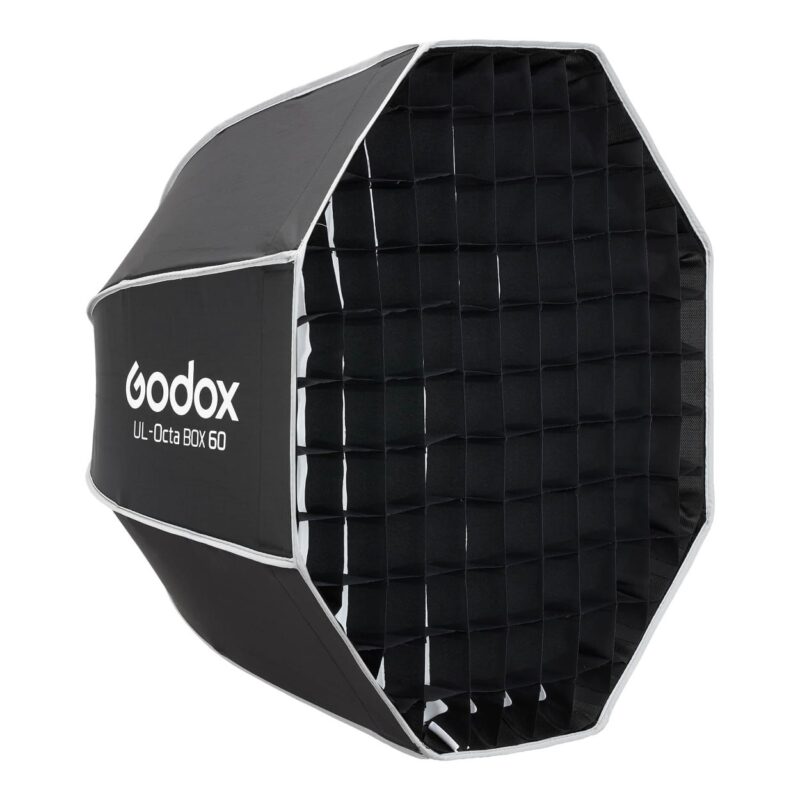 La Godox UL Octa Box 60″ est une softbox octogonale de grande taille conçue pour produire une lumière douce, enveloppante et parfaitement uniforme, idéale pour les portraits, les vidéos, les interviews ou les scènes mettant en valeur les sujets humains et les objets. Grâce à sa forme octogonale, elle offre une diffusion naturelle et flatteuse qui améliore la transition entre zones éclairées et zones d’ombre.